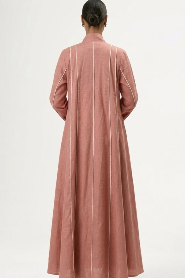 Wide cloche-cut abaya with vertical whit...