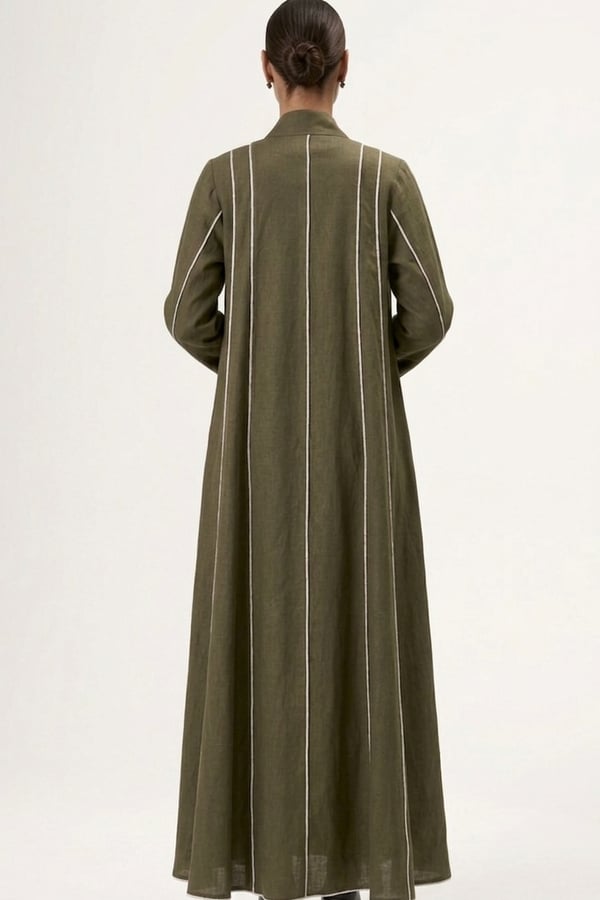 Wide cloche-cut abaya with vertical whit...