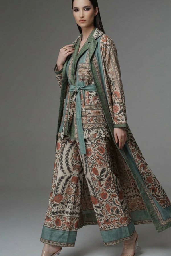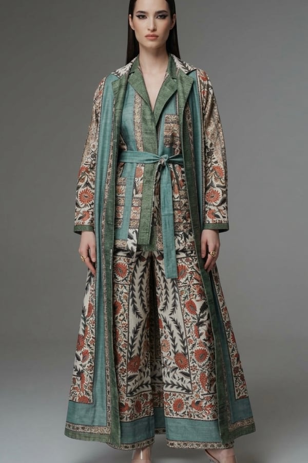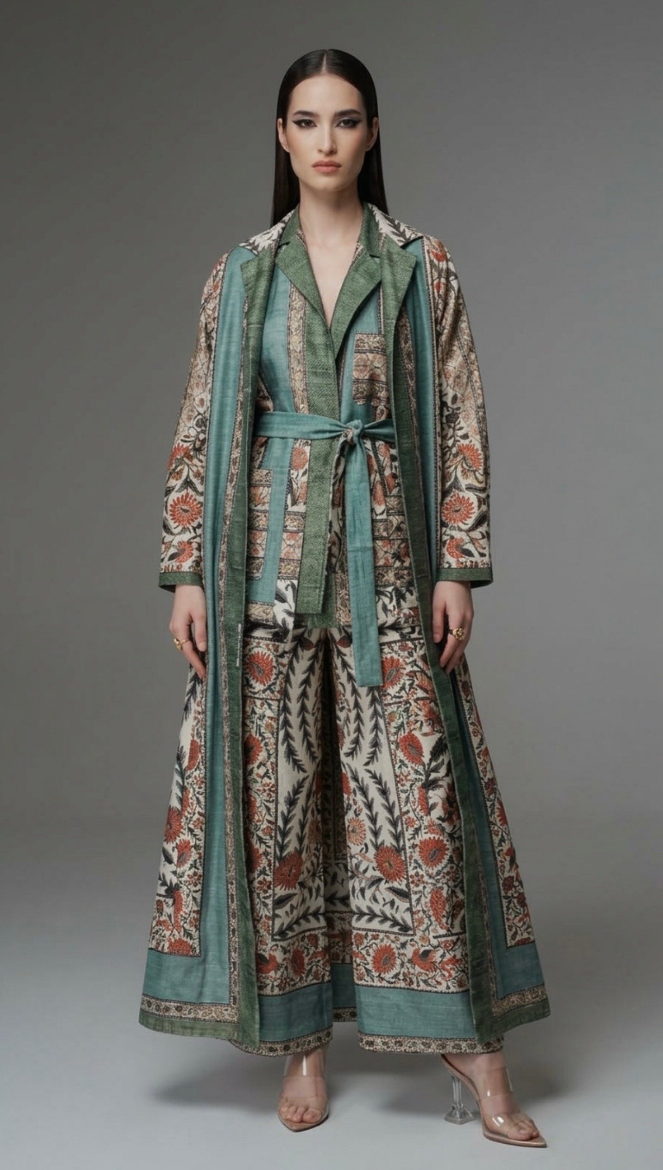 Long coat, matching dress .