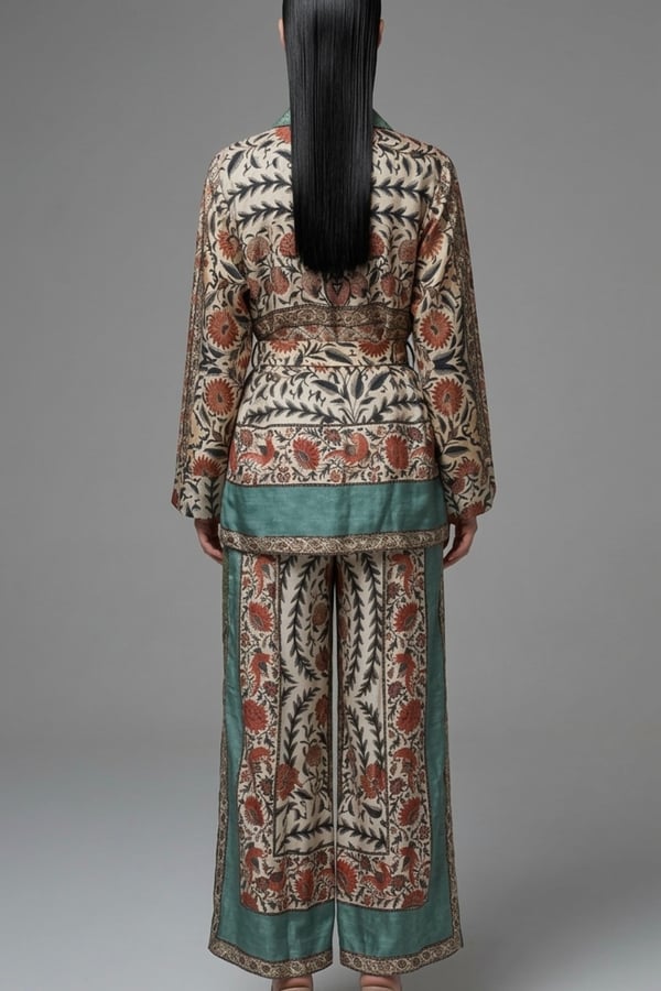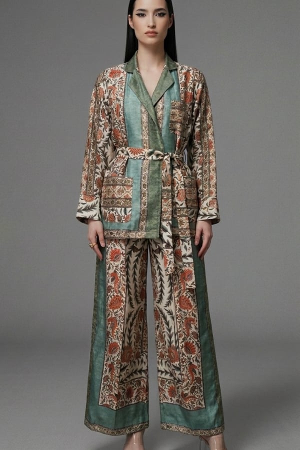 Long coat , trousers, shirt .