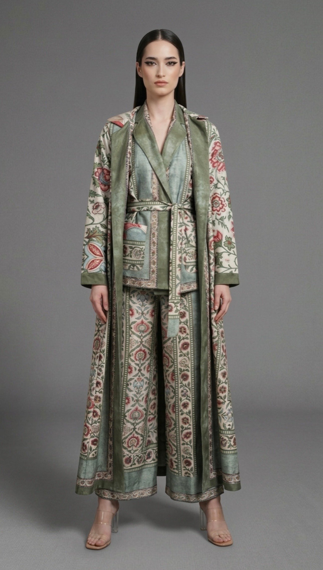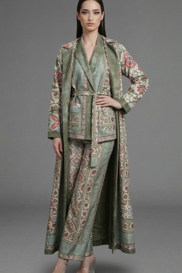 Long coat, matching dress .