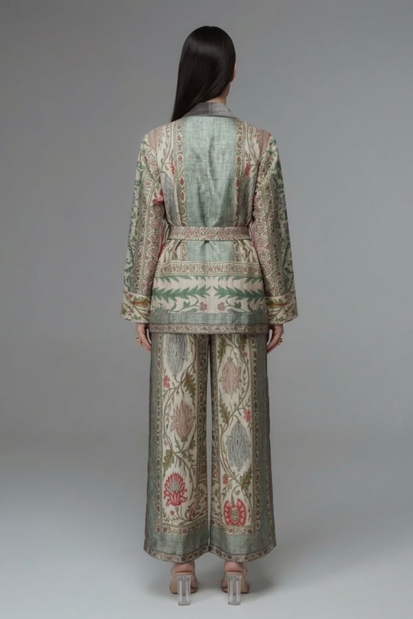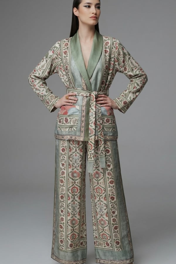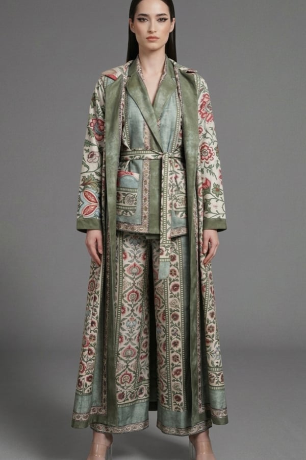 Long coat , trousers, shirt .